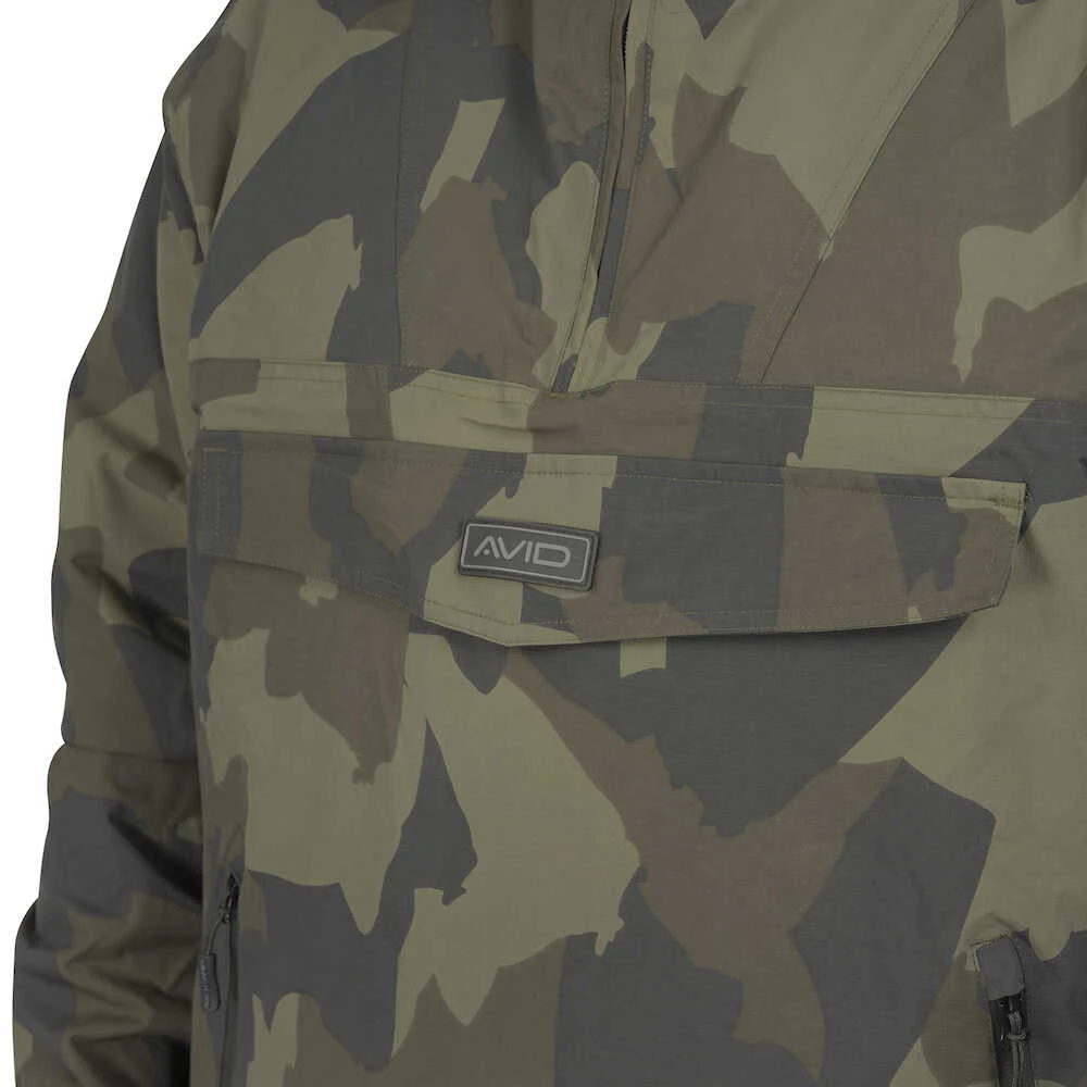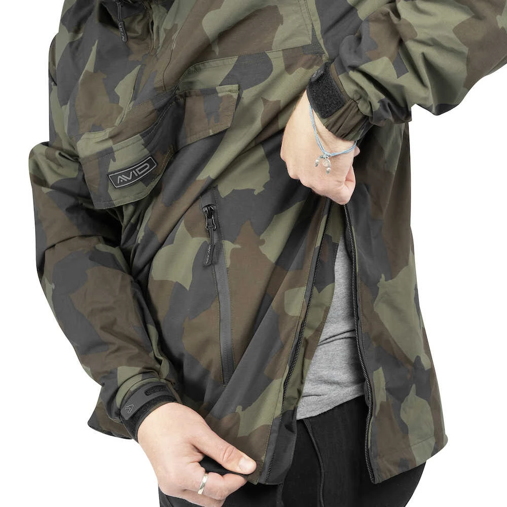The Ripstop Camo Pullover Jacket features Avid’s custom camouflage pattern on 20,000mm waterproof Ripstop material with stylish, discreet branding. Lined with a lightweight, soft-touch fabric that provides an extra windproof barrier for maximum comfort, whether in a summer shower or a biting winter wind. The large hood offers essential extra protection when needed, the wired flap provides extra coverage in inclement weather, perfect when walking around the lake looking for carp. Great for year-round use. The Pullover Jacket is super compact and can be discreetly stored in your luggage, perfect to have on hand for photos and in your bag when needed.