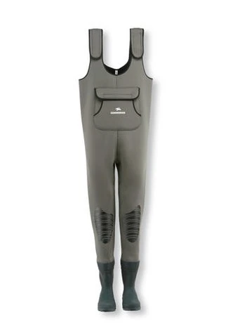 The Cormoran Neoprene Chest Waders are heavy-duty wading suits made from 4mm thick neoprene. Neoprene insulates extremely well allowing you to stay in the colder water for longer. The wading suit is equipped with sturdy rubber boots that are attached to the suit itself. There are extra reinforcements on the knees for both extra comfort and safety if you need to get down on your knees for a photo or to tie something. On the front is a pouch with a waterproof flap to store personal items, phone, keys, pliers or small equipment. The wading suit has shoulder straps at the top so you can be sure your wading suit will always fit properly!