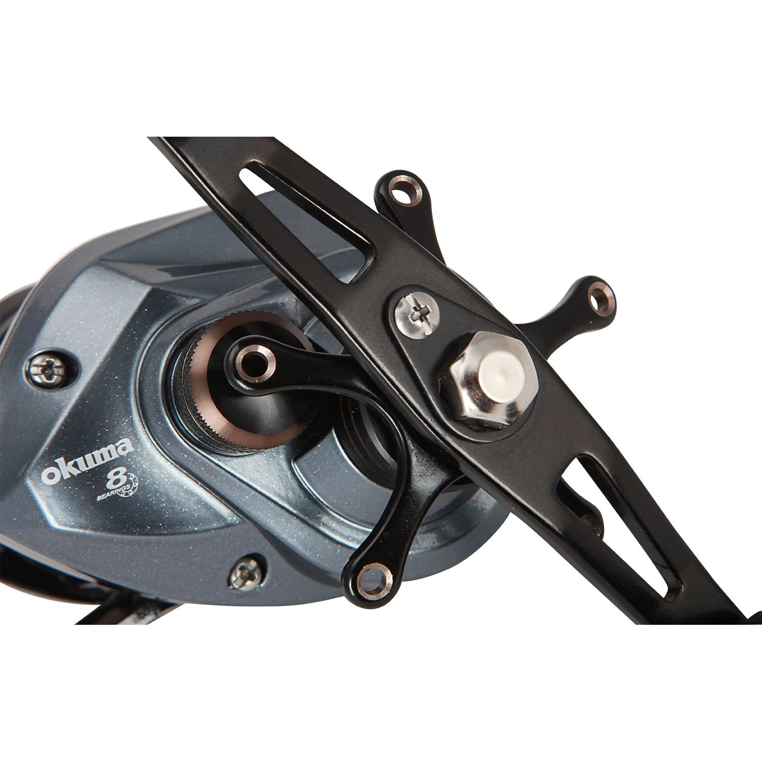 The Epixor Baitcast Reels feature a corrosion resistant graphite frame and side plates as well as a two-toned anodized machined aluminum spool. The multi-disc carbon fiber and stainless steel drag system puts out over 15 lbs. of drag. The easy change palm side plate access port gives you easy access to your spool, and the external adjustable magnetic cast control system is very user-friendly. The Epixor is packed with an 8 total stainless steel ball bearing drive system giving this reel a very smooth casting feel. The precision machine cut brass main and pinion gear make it smooth on the retrieve as well.