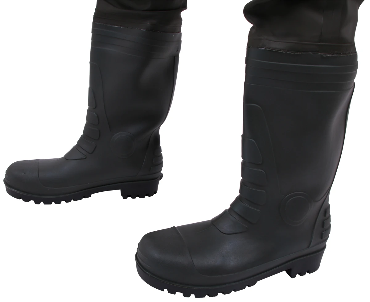 Ultimate’s PVC Waders are made of strong but flexible material with an inconspicuous colour. With this strong wading suit you can go a little deeper into the water than with high boots. Because of the built-in elasticity, the suit is never too loose or too tight. In addition, the shoulder straps are adjustable for optimal wearing comfort. The boots have a profiled sole that provides a good grip on any surface. Available in several shoe sizes.